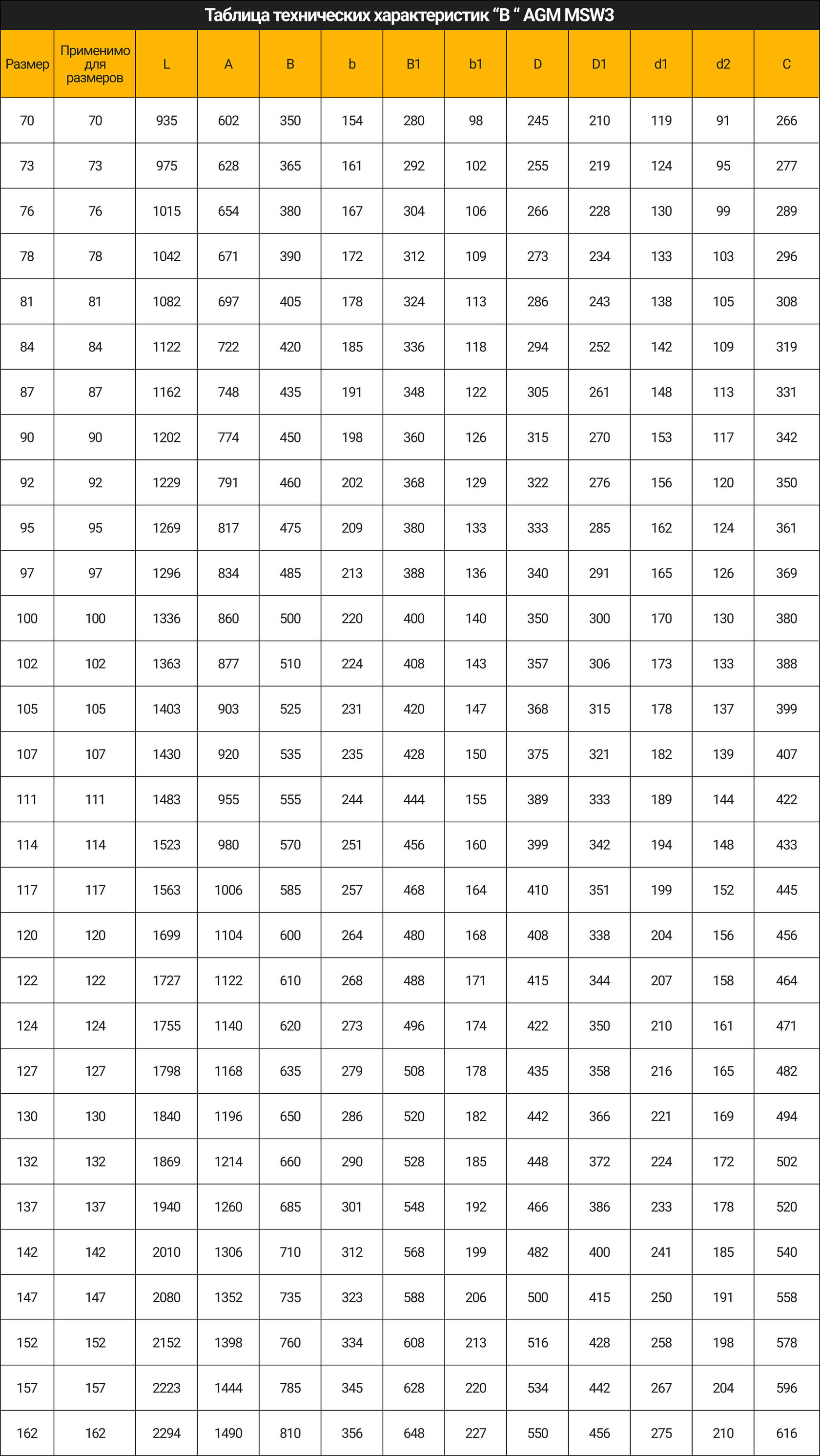 Характеристики «B» AGM MSW3