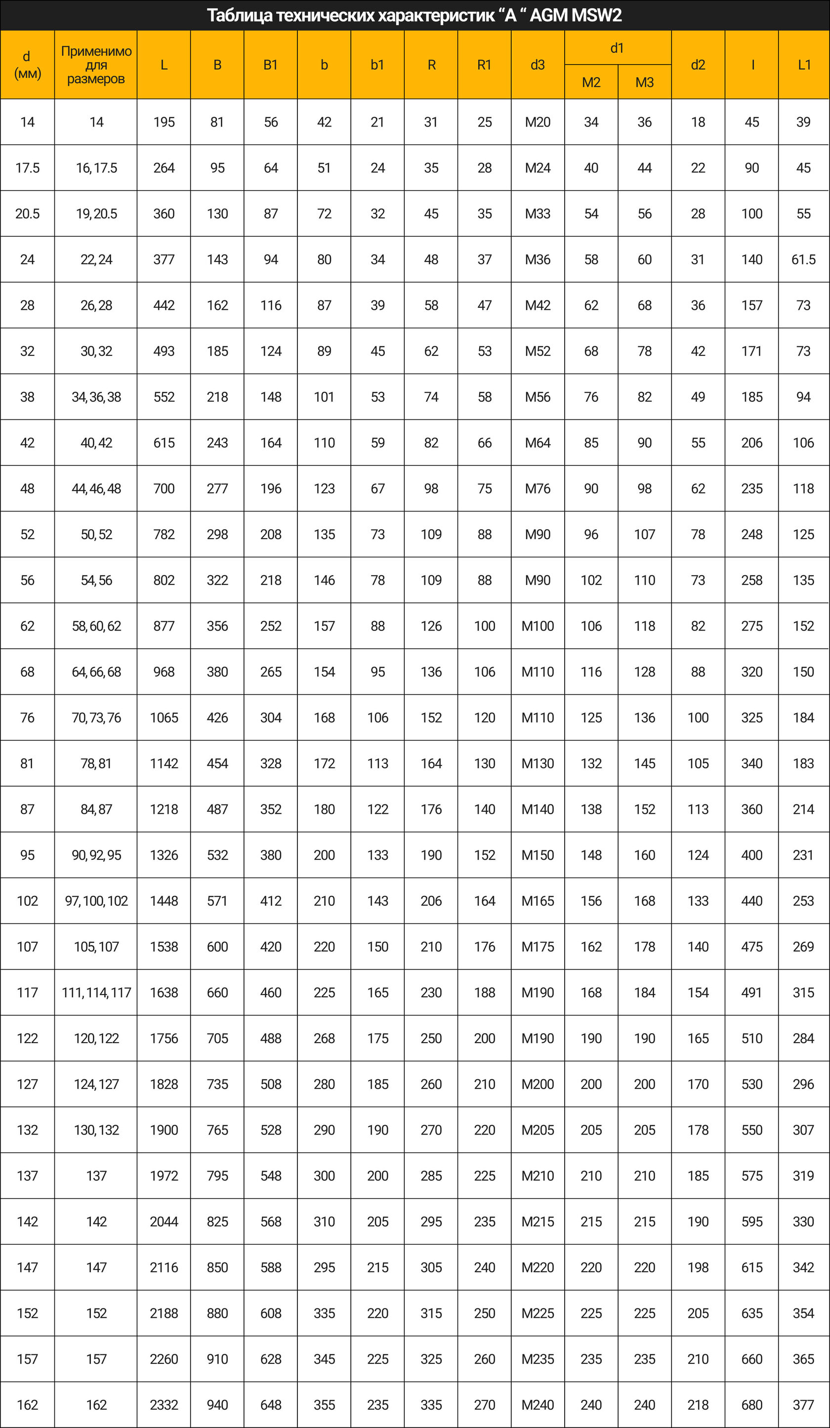 Характеристики «A» AGM MSW2